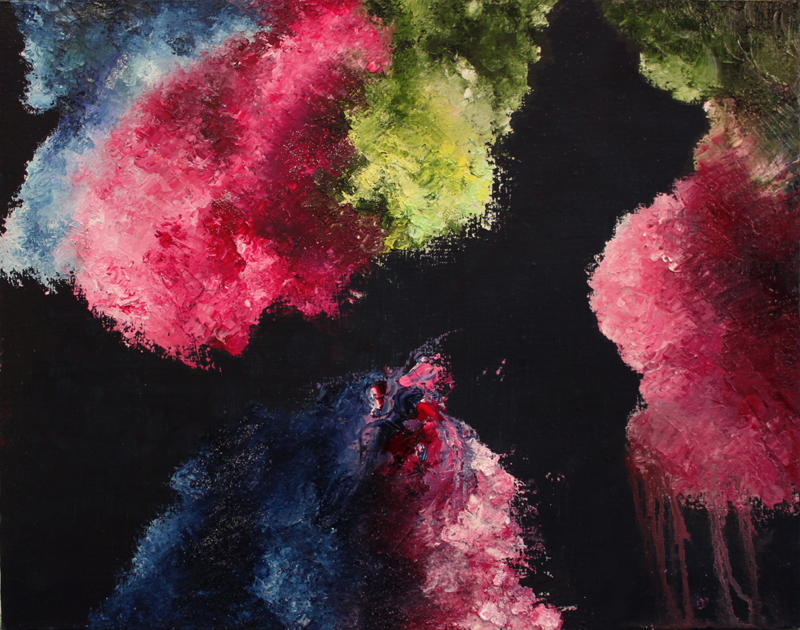 Halaa minua lujemmin, anna minulle aikaa hetkestäsi / Hold me tighter, give me some of your time Oil and sugar on canvas, 40 x 55 cm